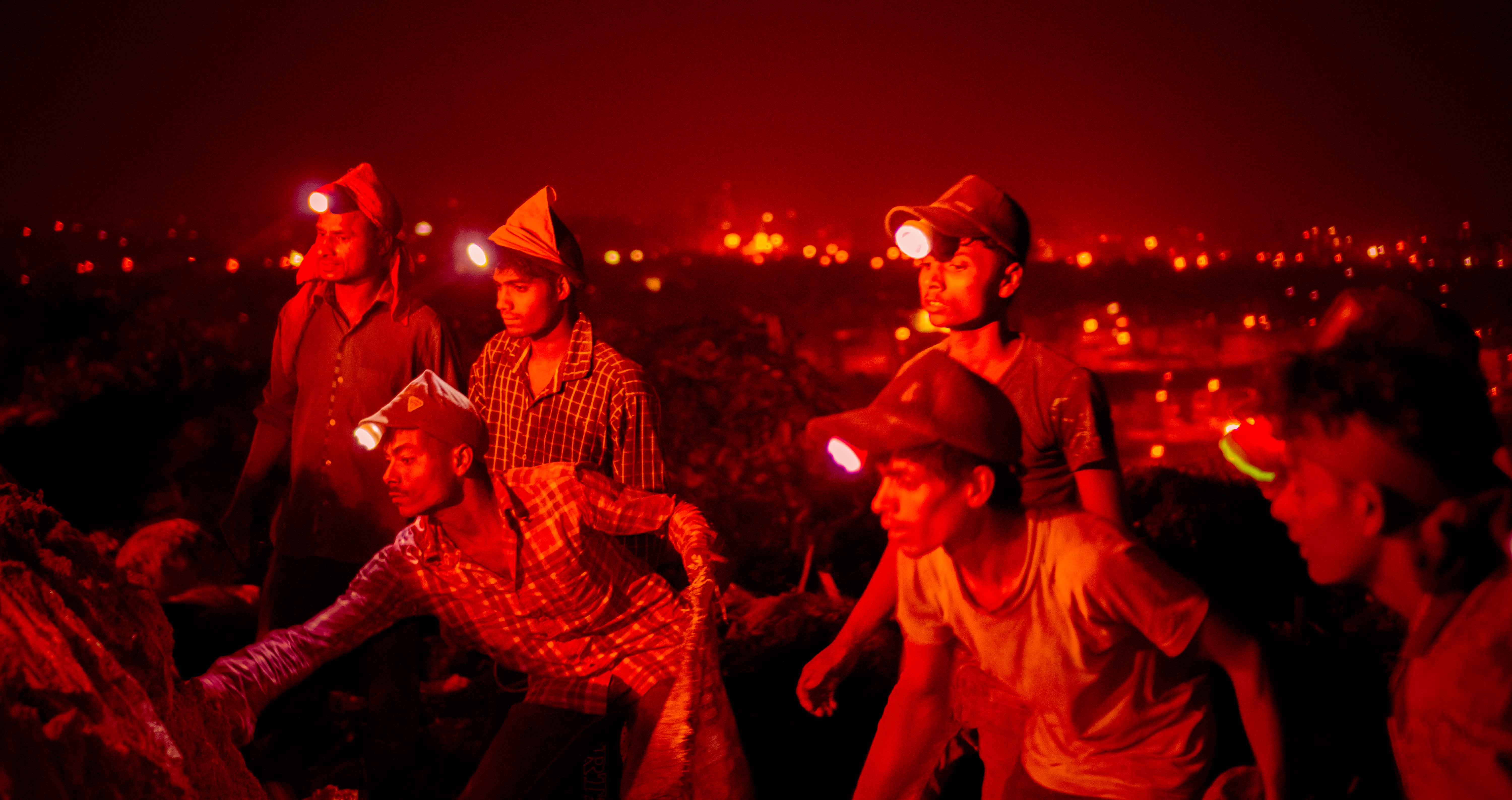 Beneath the glow of Delhi's burning landfill, a nocturnal world emerges, where silhouettes of resilience and humanity navigate society’s castoffs, forging fragile lives within smoldering decay.