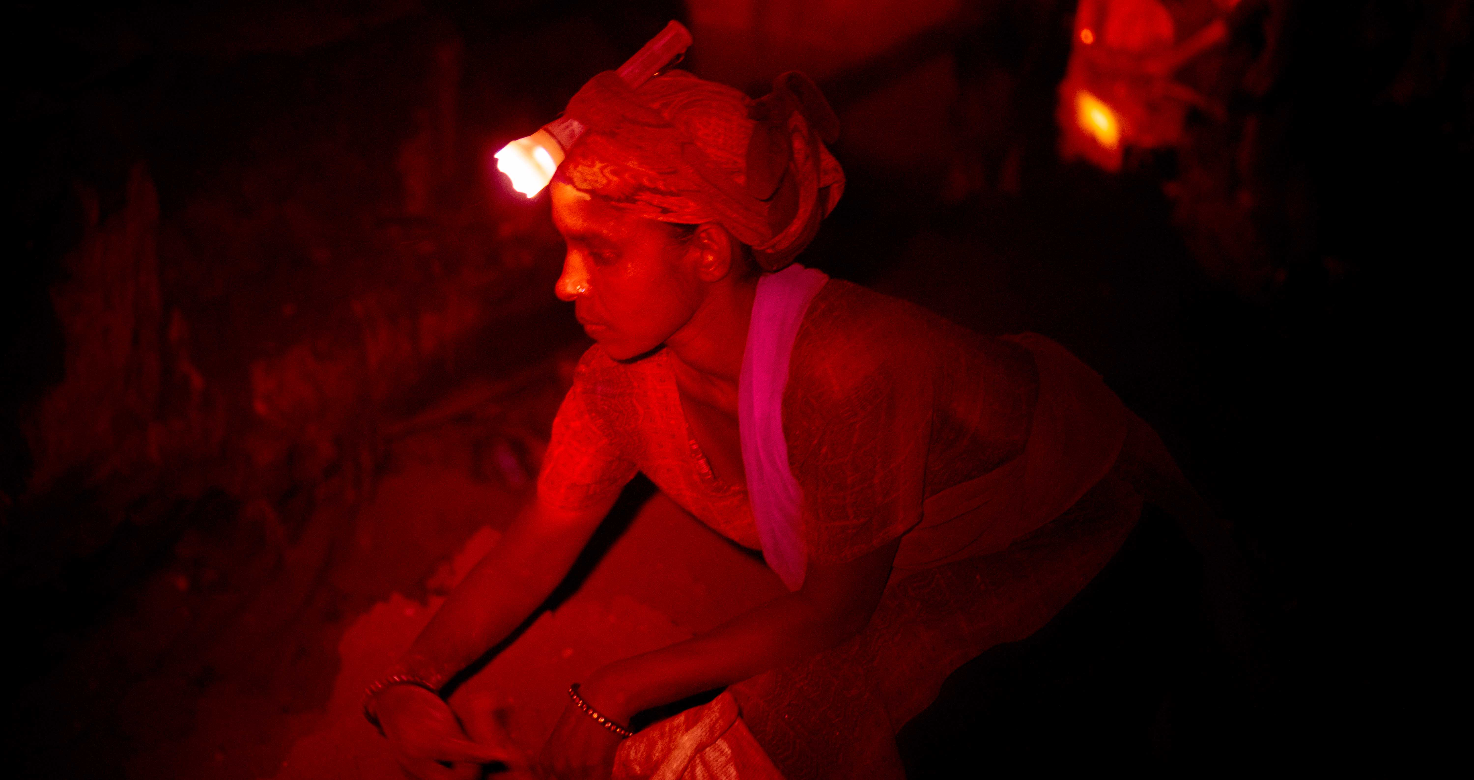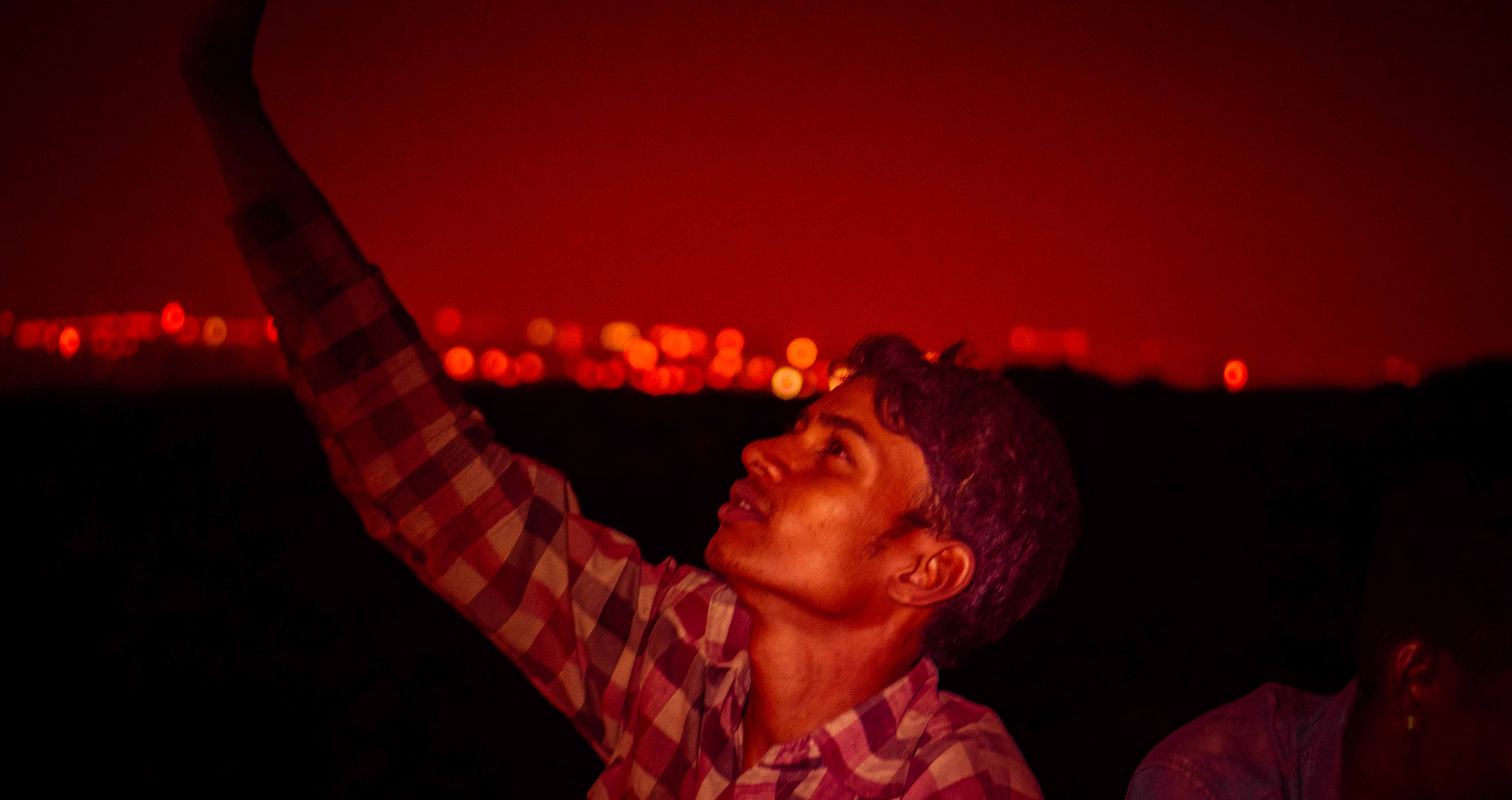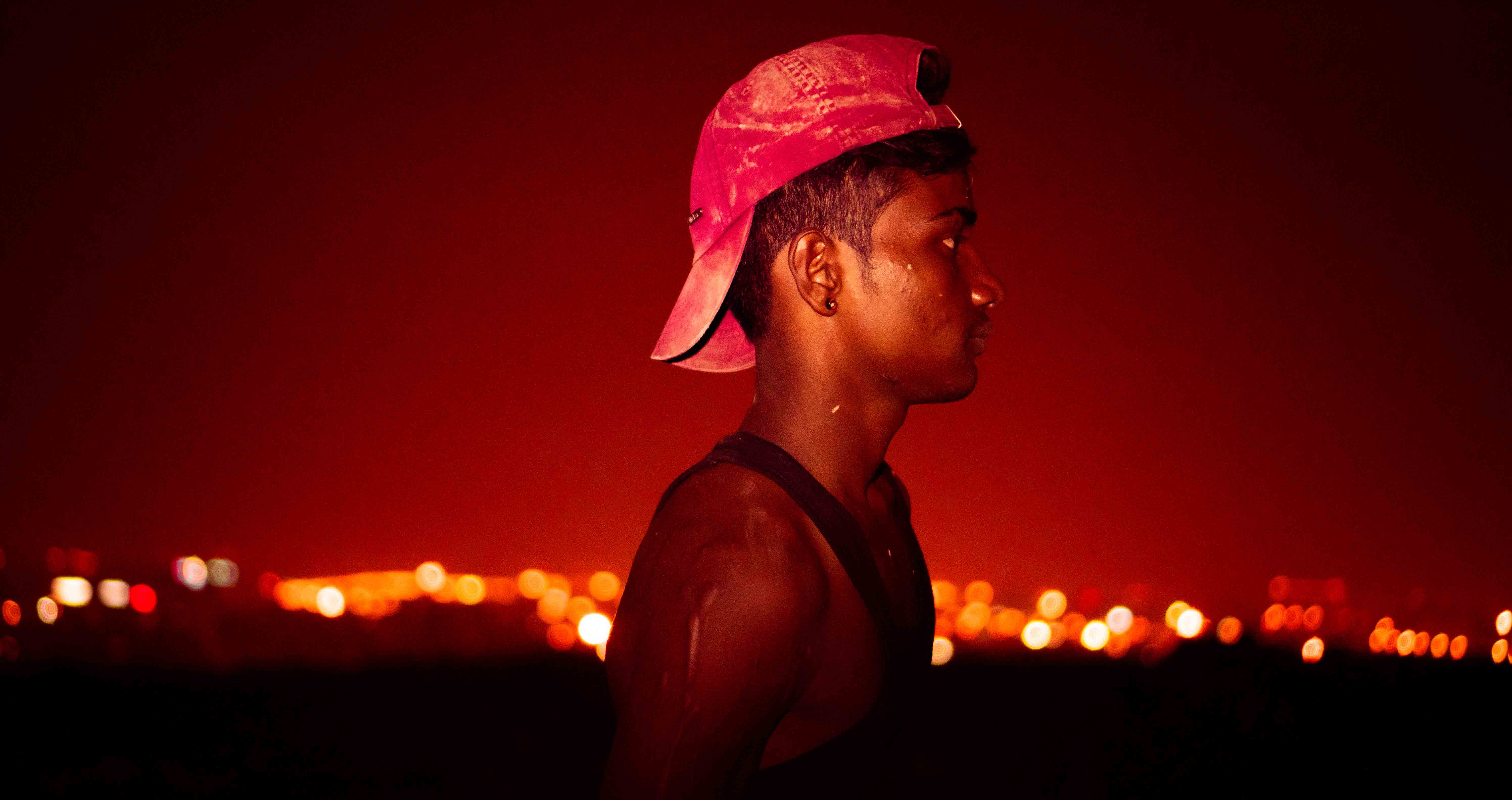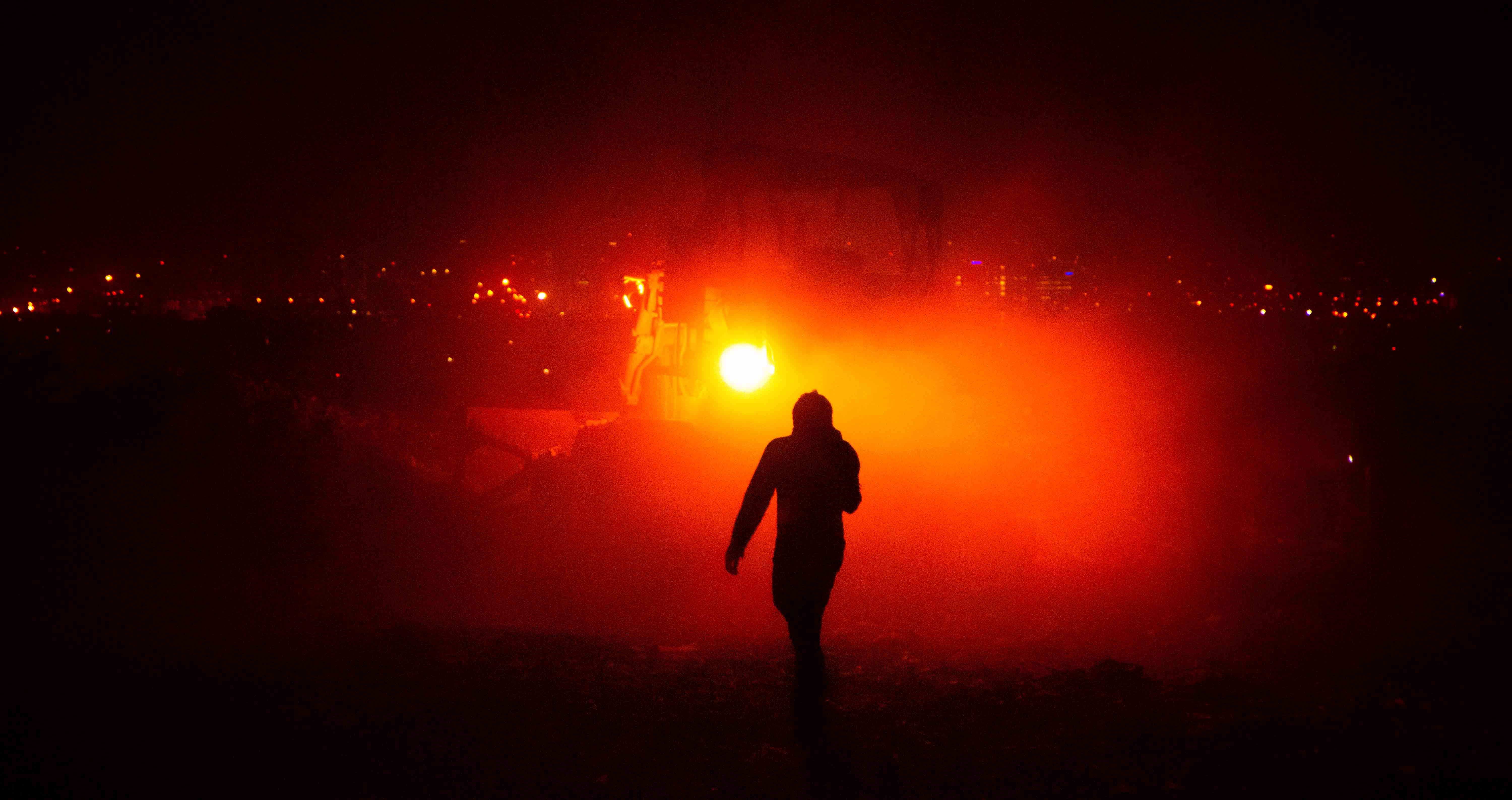 Under red lights and thick smoke, life continues. Boys, women, children. All of them climb the mountain, risking everything for scraps.